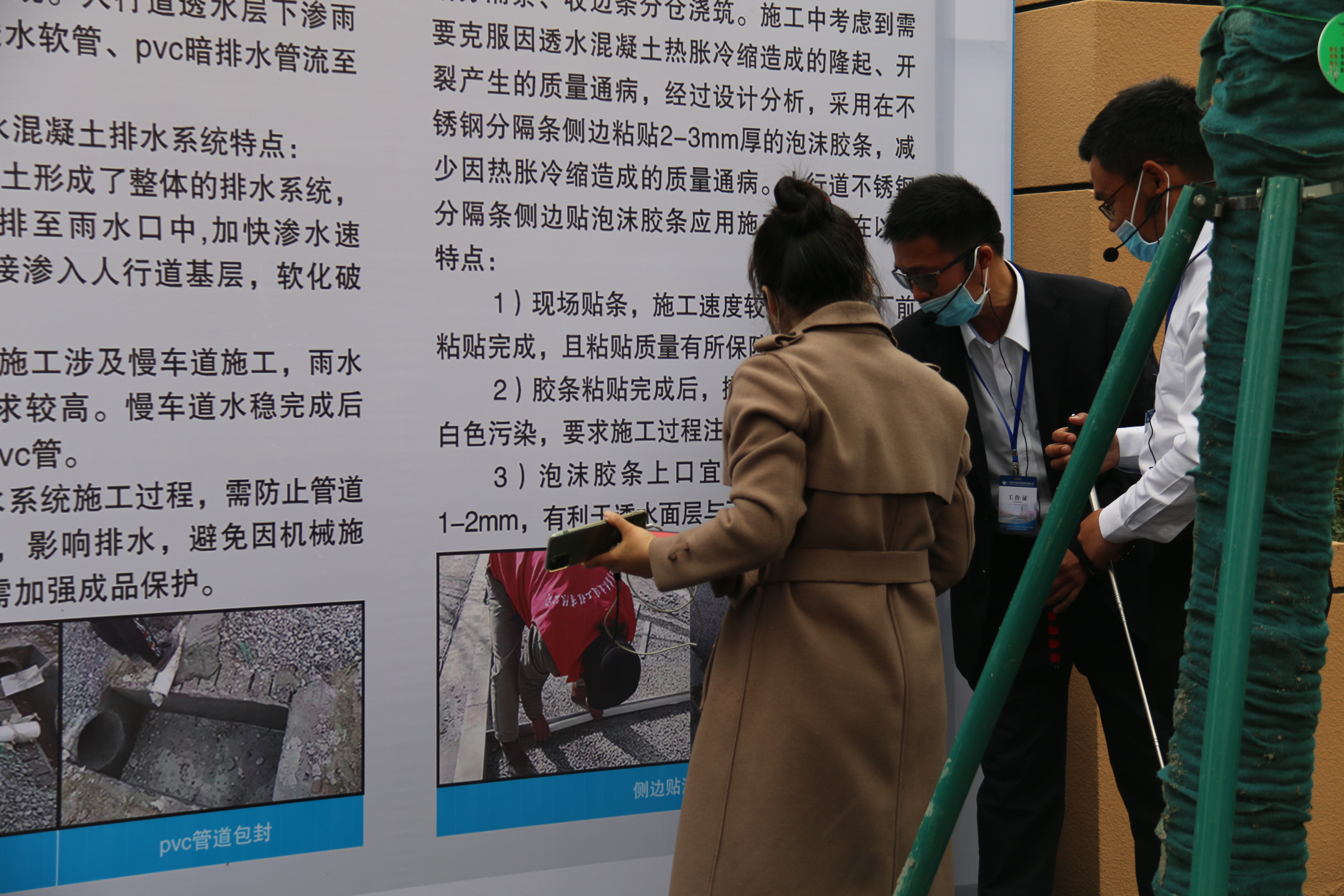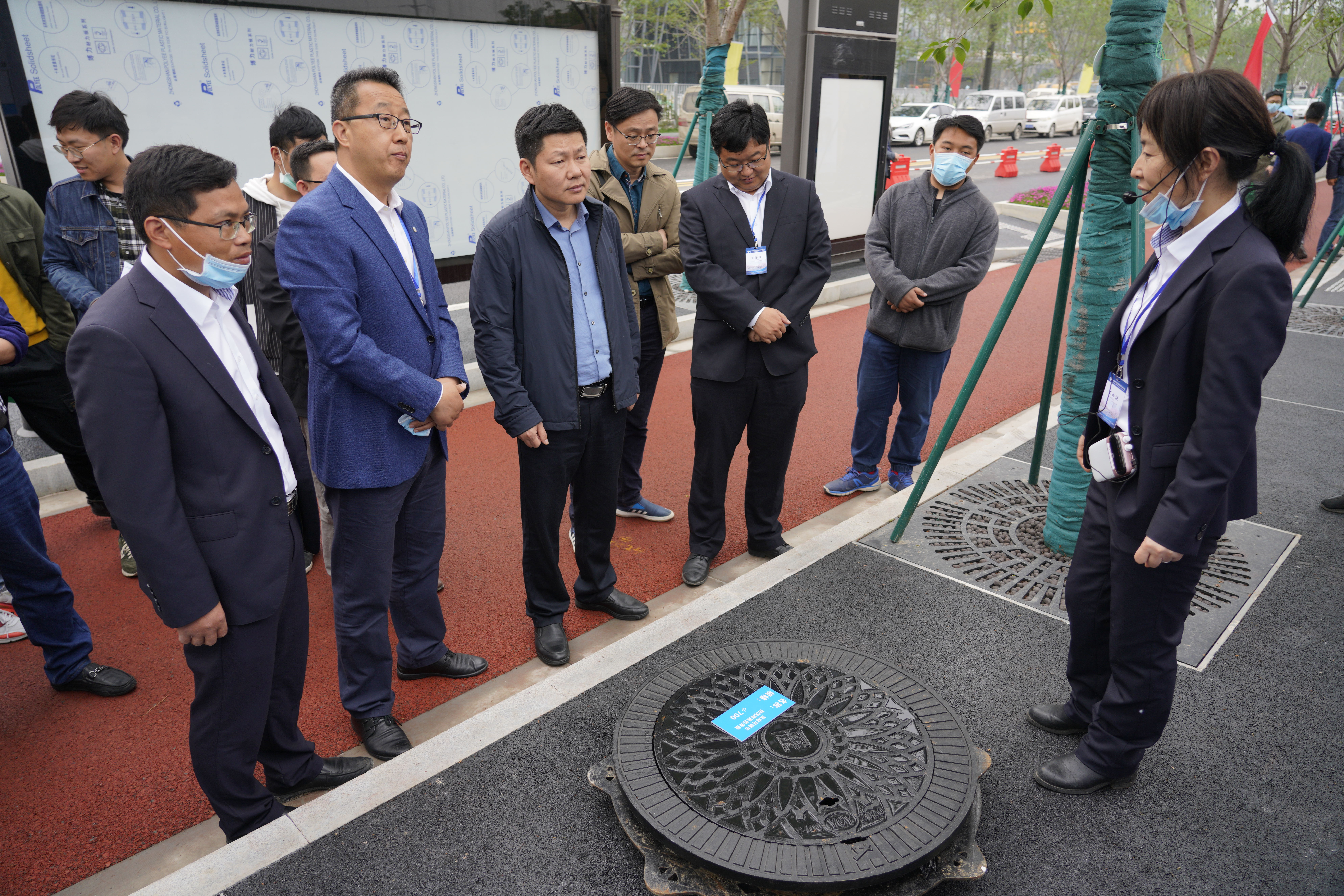 下午14點(diǎn)30分,觀摩人員陸續(xù)抵達(dá)展示區(qū),在解說(shuō)員的引導(dǎo)下,有序按照既定路線對(duì)施工中多個(gè)管理亮點(diǎn)進(jìn)行觀摩學(xué)習(xí),各展區(qū)講解員為觀摩團(tuán)提供了專業(yè)的分項(xiàng)解說(shuō)。此次,同力建設(shè)精心布置的現(xiàn)場(chǎng)實(shí)體樣板區(qū)有管道施工管枕墊板、坡面路緣石、錯(cuò)縫排版、可調(diào)節(jié)防沉降井蓋、人行道透水軟管、pvc排水管、不銹人行道盲道釘?shù)?,各樣板區(qū)都有統(tǒng)一服裝的講解員進(jìn)行精彩的解說(shuō)。參觀過(guò)程中,觀摩人員紛紛對(duì)先進(jìn)的現(xiàn)場(chǎng)管理措施贊不絕口,拿出手機(jī)、相機(jī)等設(shè)備拍照記錄項(xiàng)目的亮點(diǎn),并時(shí)不時(shí)向講解員提問(wèn)交流學(xué)習(xí)。