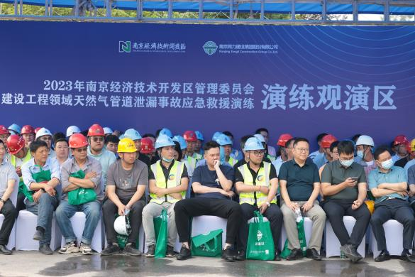 本次演練觀摩人員有:南京經(jīng)濟(jì)技術(shù)開(kāi)發(fā)區(qū)管委會(huì)孫愛(ài)軍主任、徐寧生副主任、熊俊副主任,同力建設(shè)董事長(zhǎng)方偉,經(jīng)開(kāi)區(qū)黨政辦公室、宣傳與統(tǒng)戰(zhàn)部、企業(yè)服務(wù)局、建交局、應(yīng)急局、消防救援大隊(duì)、公安分局、城管局、環(huán)保局、港華燃?xì)獾认嚓P(guān)部門(mén)領(lǐng)導(dǎo),園區(qū)建設(shè)施工單位約100人觀摩考察。